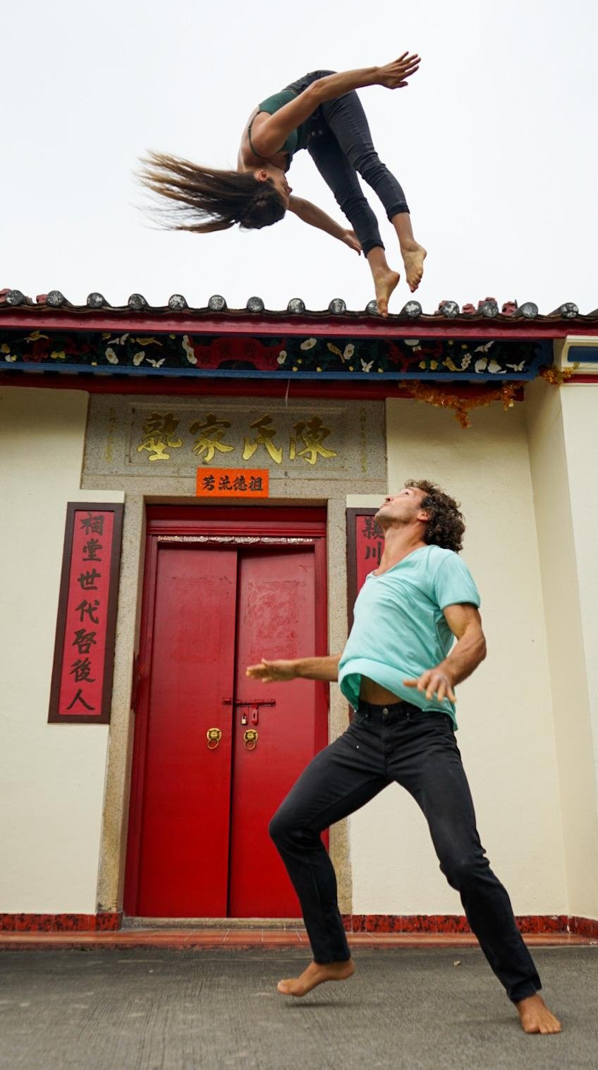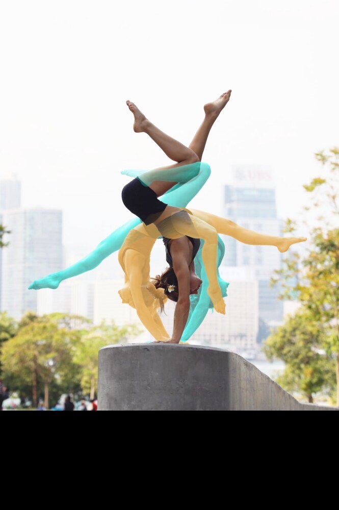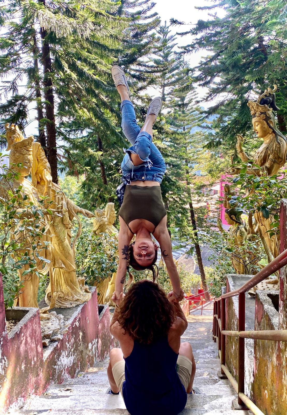 However, as we know, things were to take an unexpected turn for the world when Covid-19 hit; Countries were locked down and the borders were closed between Hong Kong and Macau. Flor has been stranded in Hong Kong after visiting a friend a year ago. Unable to return to Macau, Flor, as a niche performing artist was hit on many levels: unable to perform in the show, unpaid, and miles away from family or other support, things were looking bleak. But, ever the survivor, Flor’s resilience and love of performing enabled her to come up with an alternative, rather than put her life on hold. With a male partner, she took to the streets of Hong Kong for a daily dose of acrobatics as a means to survive the pandemic. Team work is an essential part of acrobatics, and the right person to pair up with is paramount to a successful performance.