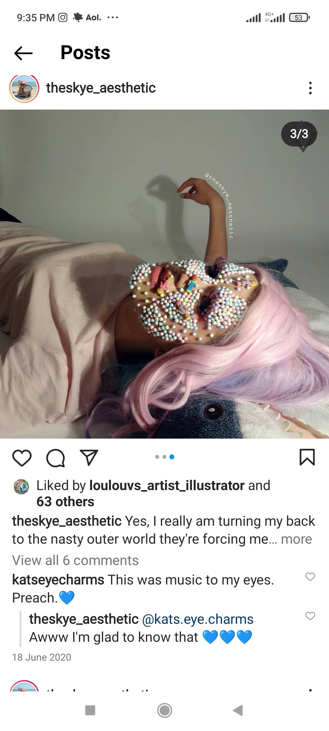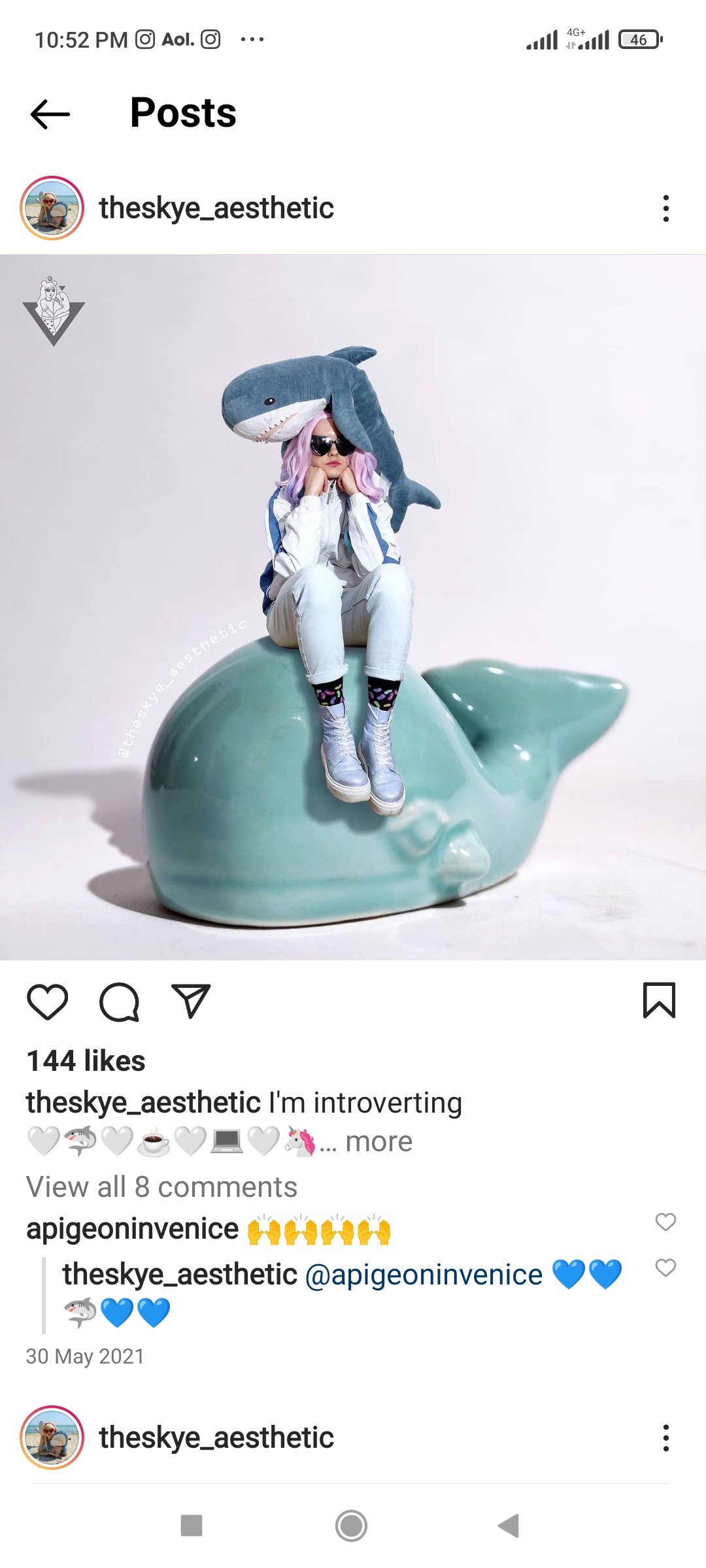 I find Skye and Blåhaj ‘s rainbow candied world as emotionally rich as it is satisfying. I want to join them in the fun of their pictorial adventures, yet, I feel that it would be intrusive to do so. So I will keep on following their mischievous antics from afar, and if you wish to do the same, or become their friends, follow them on Instagram, theskye_aesthetic