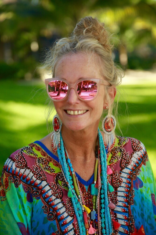 My home in Sai Kung is also full of colour (I painted the exterior bright orange with bright blue accents). The walls of our bedroom (I have a very accommodating husband, ha!!) are festooned with all my jewellery! A lot of my clothes are quite diaphanous and colourful. I especially love to contrast colours that others might not put together, I love things that clash. I also love patterns and am not afraid of wearing numerous different patterns in one outfit!! My favourite accessories are my huge earrings…I have curated an amazing collection over the years and am always on the lookout for new designers to buy from. I don’t have any expensive jewellery (apart from my wedding and engagement rings); everything else is cheap and cheerful but has massive sentimental value, worth more than diamonds to me. My clothes and accessories (I love, love, love long flowy scarves…especially Indian dupattas!!) give me soooooo much joy…they make me smile and I hope my wardrobe choices brighten others’ days as much as they do mine. Plus, they act as GREAT conversation starters!