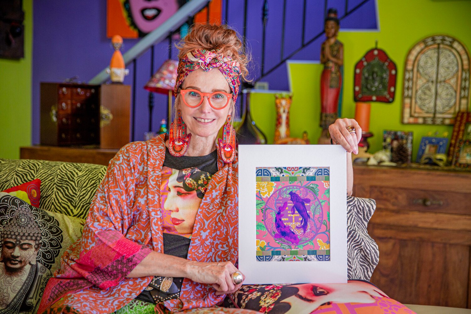 At the age of 62 Lindsey has reinvented/gone back to her roots as a visual artist with her uniquely Hong Kong brand ‘CRAFTY BITCH’